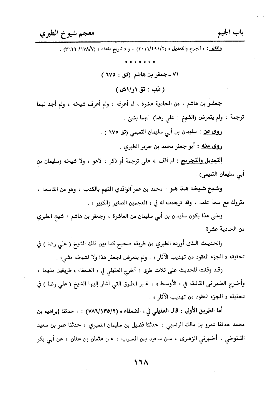 وعلى هذا يكون سليمان بن أبي سليمان من العاشرة، وجعفر بن هاشم؛ شيخ الطبري من الحادية عشرة.