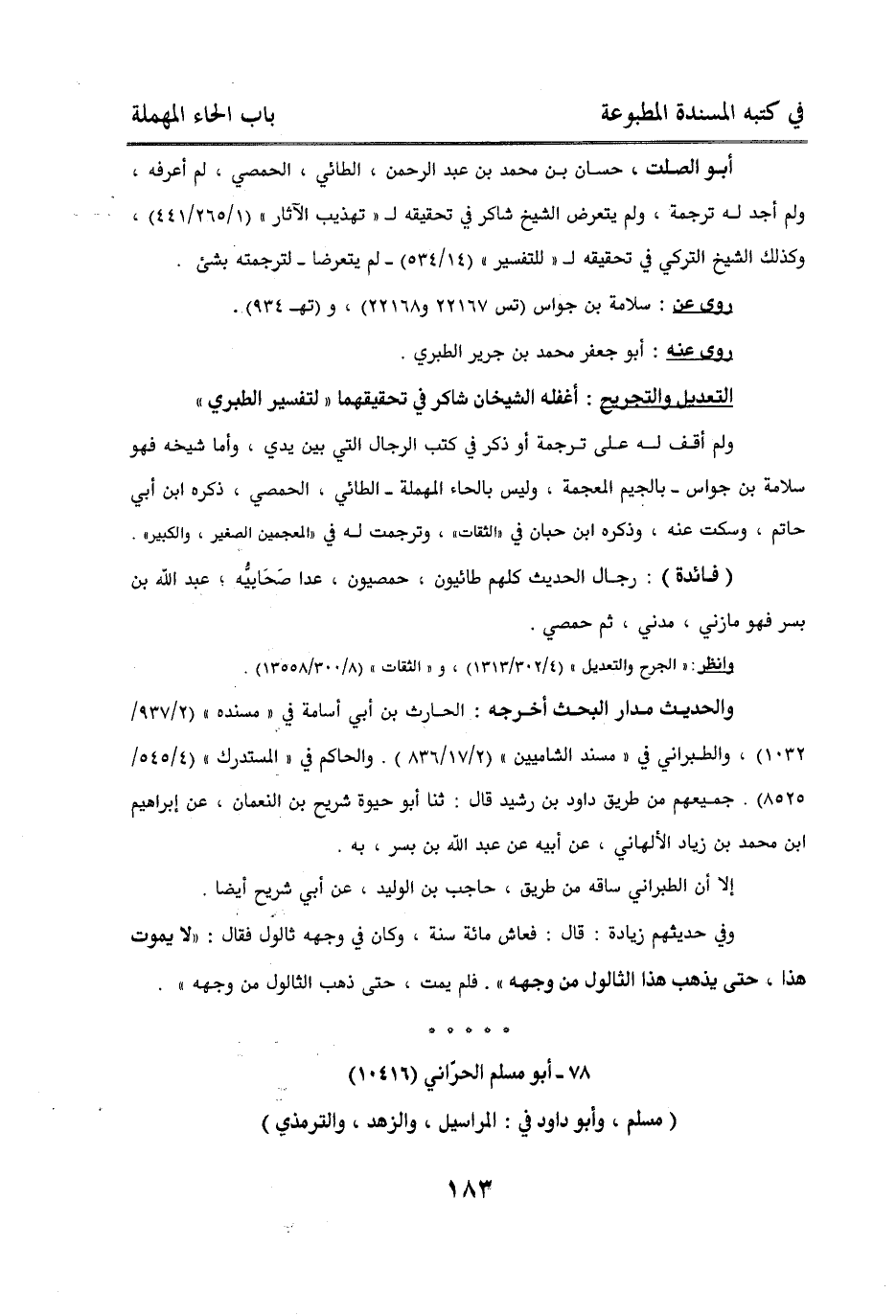 التعديل والتجريح: أغفله الشيخان شاكر في تحقيقهما " لتفسير الطبري ".