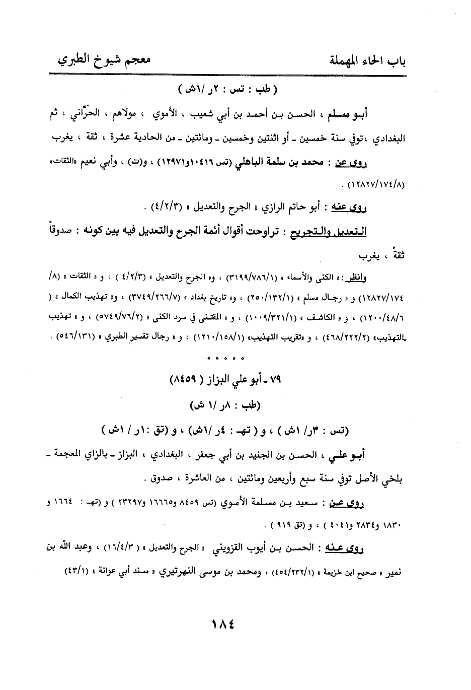وانظر: " الكنى والأسماء " (1/ 786 / 3199)، و " الجرح والتعديل " (3/ 2 / 4)، و " الثقات " (8/ 174 / 12827) و " رجال مسلم " (1/ 132 / 250)، و " تاريخ بغداد " (7/ 266 / 3749) " و " تهذيب الكمال " (6/ 48 / 1200)، و " الكاشف " (1/ 321 / 1009)، و " المقتنى في سرد الكنى " (2/ 76 / 5749)، و " تهذيب التهذيب " (2/ 222 / 468)، و " تقريب التهذيب " (1/ 158 / 1210)، و " رجال تفسير الطبري " (131/ 546).