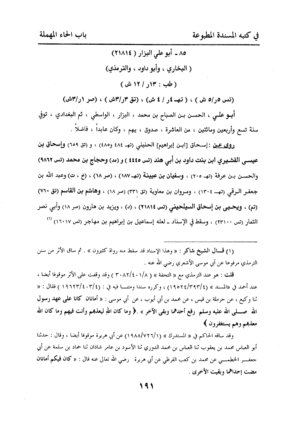 روى عن: إسحاق [ابن إبراهيم] الحنيني (تهـ 484 و 485)، و (تق 659) وإسحاق بن عيسى القشيري ابن بنت داود بن أبي هند (تس 4445) و (مد) وحجاج بن محمد (تس 9862)، والحسن بن عرفة (تهـ 205)، وسفيان بن عيينة (تهـ 187)، (صر 18)، (خ، ت) وعبد الله بن جعفر الرقي (تهـ 1304)، ومروان بن معاوية (تق 331) (صر 18)، وهاشم بن القاسم (تق 710) (تم)، ويحيى بن إسحاق السيلحيني (تس 21814)، (د)، ويزيد بن هارون (صر 18) وأبي نصر التمار (تس 23100)، وسقط في الإسناد، لعله إسماعيل بن إبراهيم بن مهاجر (تس 16017).