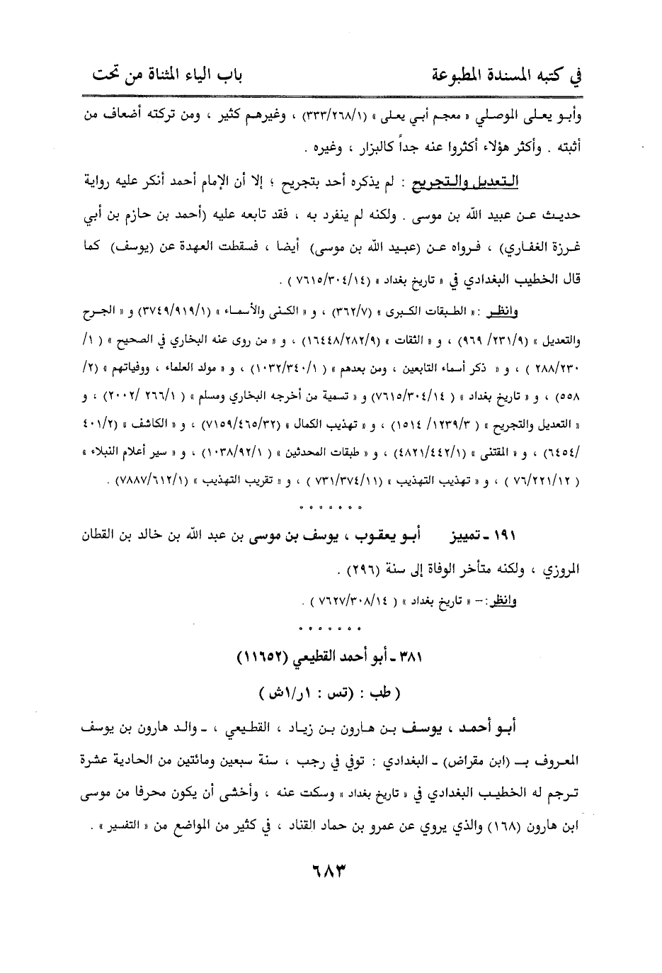 191 - – تمييز أبو يعقوب، يوسف بن موسى بن عبد الله بن خالد بن القطان المروزي، ولكنه متأخر الوفاة إلى سنة (296)