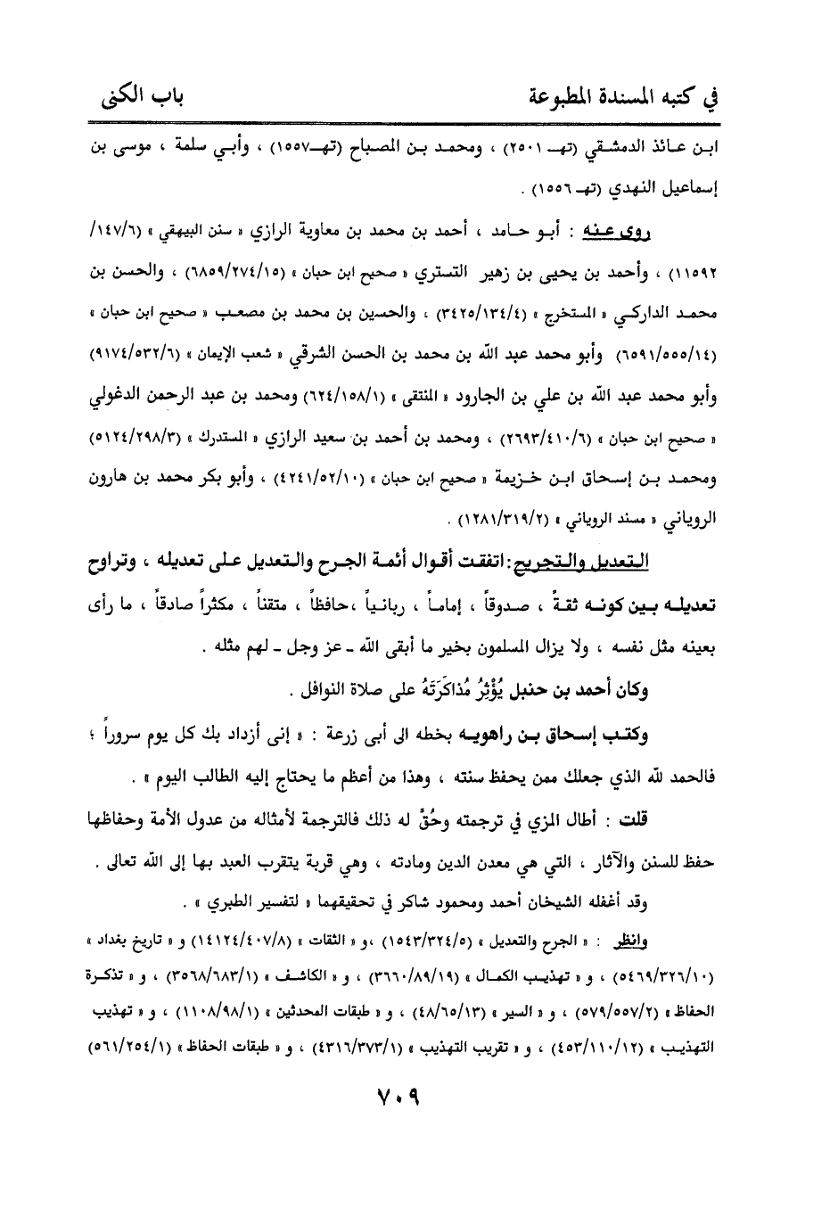 قلت: أطال المزي في ترجمته وحق له ذلك فالترجمة لأمثاله من عدول الأمة وحفاظها حفظ للسنن والآثار، التي هي معدن الدين ومادته، وهي قربة يتقرب العبد بها إلى الله تعالى. وقد أغفله الشيخان أحمد ومحمود شاكر في تحقيقهما “ لتفسير الطبري “.