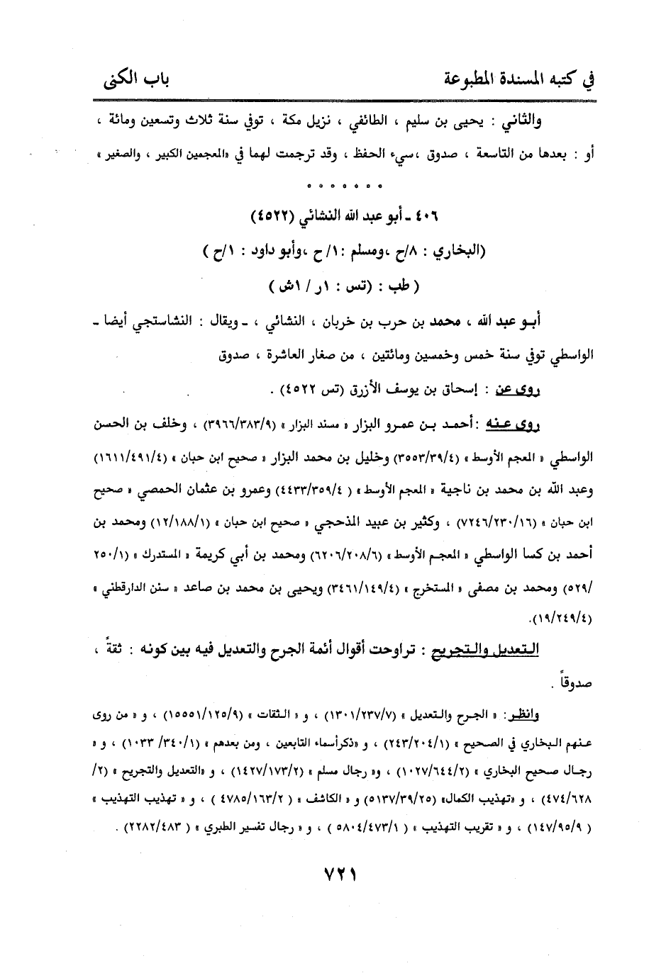 وانظر: “ الجرح والتعديل “ (7/ 237 / 1301) و“ الثقات “ (9/ 125 / 15551)، و“ من روى عنهم البخاري في الصحيح “ (1/ 204 / 243)، و“ ذكر أسماء التابعين ومن بعدهم “ (1/ 340 / 1033)، و“ رجال صحيح البخاري “ (2/ 644 / 1027)، و“ رجال مسلم “ (2/ 173 / 1427) و“ التعديل والتجريح “ (2/ 628 / 474)، و“ تهذيب الكمال “ (25/ 39 / 5137) و“ الكاشف “ (2/ 163 / 4785)، و“ تهذيب التهذيب “ (9/ 95 / 147)، و“ تقريب التهذيب “ (1/ 473 / 5804)، و“ رجال تفسير الطبري “ (483/ 2282).