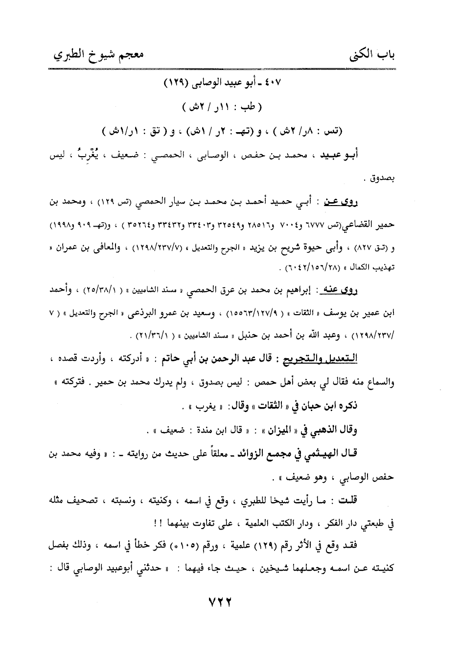 قلت: ما رأيت شيخا للطبري، وقع في اسمه، وكنيته، ونسبته، تصحيف مثله في طبعتي دار الفكر، ودار الكتب العلمية، على تفاوت بينهما!!