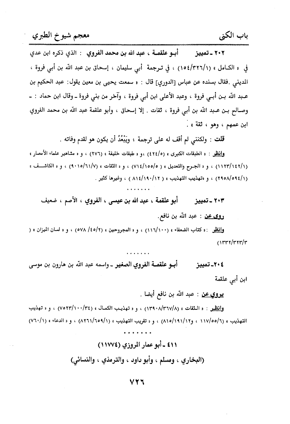 204 - – تمييز أبو علقمة الفروي الصغير - واسمه عبد الله بن هارون بن موسى بن أبي علقمة.