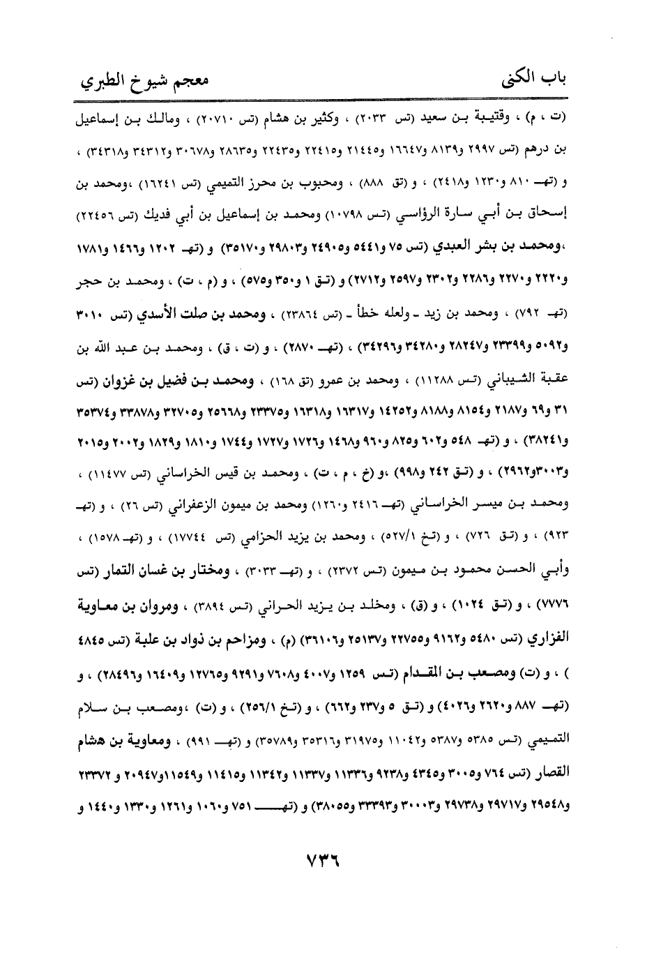 و (ت، م) وقتيبة بن سعيد (تس 2033) وكثير بن هشام (تس 20710) ومالك بن إسماعيل بن درهم (تس 2997 و8139 و16647 و21445 و22415 و22435 و28635 و30678 و34312 و34318) و (تهـ 810 و1230 و2418) و (تق 888) ومحبوب بن محرز التميمي (تس 16241) ومحمد بن إسحاق بن أبي سارة الرؤاسي (تس 10798) ومحمد بن إسماعيل بن أبي فديك (تس 22456)، ومحمد بن بشر العبدي (تس 75 و5441 و24905 و29803 و35170) و (تهـ 1202 و1466 و1781 و2220 و2270 و2286 و2302 و2597 و2712) و (تق 1 و350 و575) و (م، ت) “ ومحمد بن حجر (تهـ 792)، ومحمد بن زيد - ولعله خطأ - (تس 23864)، ومحمد بن صلت الأسدي (تس 3010 و5092 و23399 و28247 و34280 و34296)، (تهـ 2870)، و (ت، ق)، ومحمد بن عبد الله بن عقبة الشيباني (تس 11288)، ومحمد بن عمرو (تق 168)، ومحمد بن فضيل بن غزوان (تس 31 و69 و2187 و8154 و8188 و14252 و16317 و16318 و23375 و25668 و32705 و33878 و35374 و38241) و (تهـ 548 و602 و825 و960 و1468 و1726 و1727 و1744 و1810 و1829 و2002 و2015 و3003 و2962)، و (تق 242 و998) و (خ، م، ت)، ومحمد بن قيس الخراساني (تس 11477)، ومحمد بن ميسر الخراساني (تهـ 2416 و1260) ومحمد بن ميمون الزعفراني (تس 26)، و (تهـ 923)، و (تق 726)، و (تخ 1/ 527)، ومحمد بن يزيد الحزامي (تس 17744)، و (تهـ 1578)، وأبي الحسن محمود بن ميمون (تس 2372)، و (تهـ 3033)، ومختار بن غسان التمار (تس 7776)، و (تق 1024)، و (ق)، ومخلد بن يزيد الحراني (تس 3894)، ومروان بن معاوية الفزاري (تس 5480 و9162 و22755 و25137 و36106) (م)، ومزاحم بن ذواد بن علبة (تس 4845)، و (ت) ومصعب بن المقدام (تس 1259 و4007 و7608 و9291 و12765 و16409 و28496)، و (تهـ 887 و2620 و4026) و (تق 5 و237 و662)، و (تخ 1/ 256)، و (ت) ومصعب بن سلام التميمي (تس 5385 و5387 و11042 و31975 و35316 و35789) و (تهـ 991) ومعاوية بن هشام القصار (تس 764 و3005 و4345 و9238 و11336 و11337 و11342 و11415 و11549 و20947 و23372 و29548 و29717 و29738 و30003 و33393 و38055) و (تهـ 751 و1060 و1261 و1330 و1440