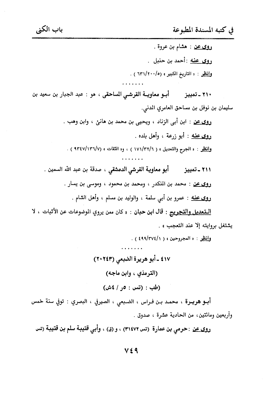 211 - تمييز أبو معاوية القرشي الدمشقي، صدقة بن عبد الله السمين.