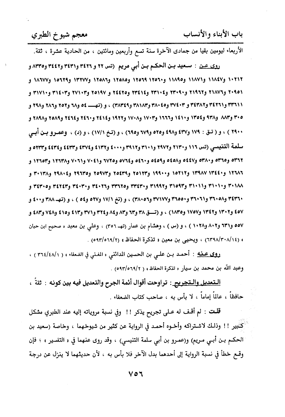 قلت: لم أقف له على تجريح يذكر!.! وفي نسبة مروياته إليه عند الطبري مشكل كبير!! وذلك لاشتراكه وأخوه أحمد في الرواية عن كثير من شيوخهما، وخاصة (سعيد بن الحكم بن أبي مريم) و (عمرو بن أبي سلمة التنيسي)، وقد روى عنهما في “ التفسير “؛ فإن وقع خطأ في نسبة الرواية إلى أحدهما بدل الآخر فلا بأس به، لأن حديثهما لا ينزل عن درجة