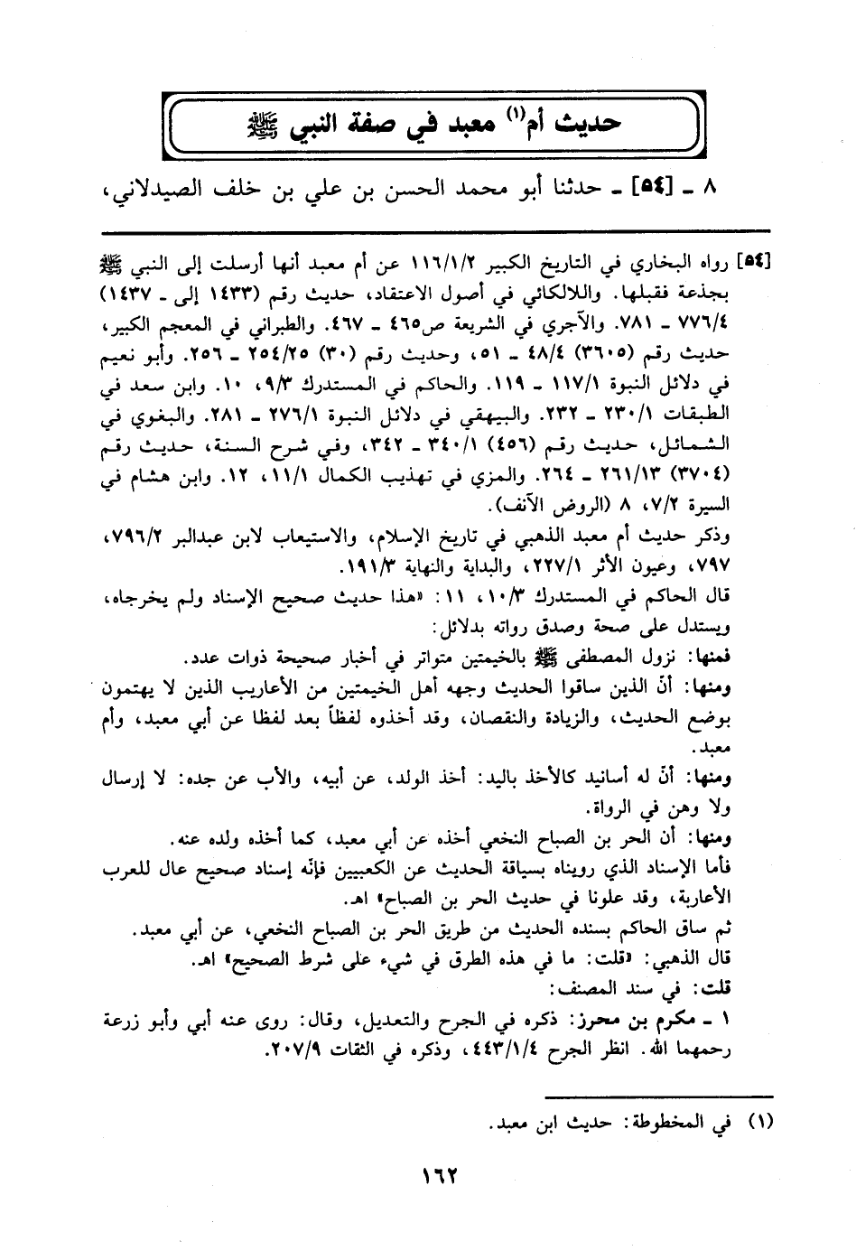 ((حديث أم مَعْبَدٍ فِي صِفَةِ النَّبِيِّ صَلَّى اللَّهُ عَلَيْهِ وَسَلَّمَ))