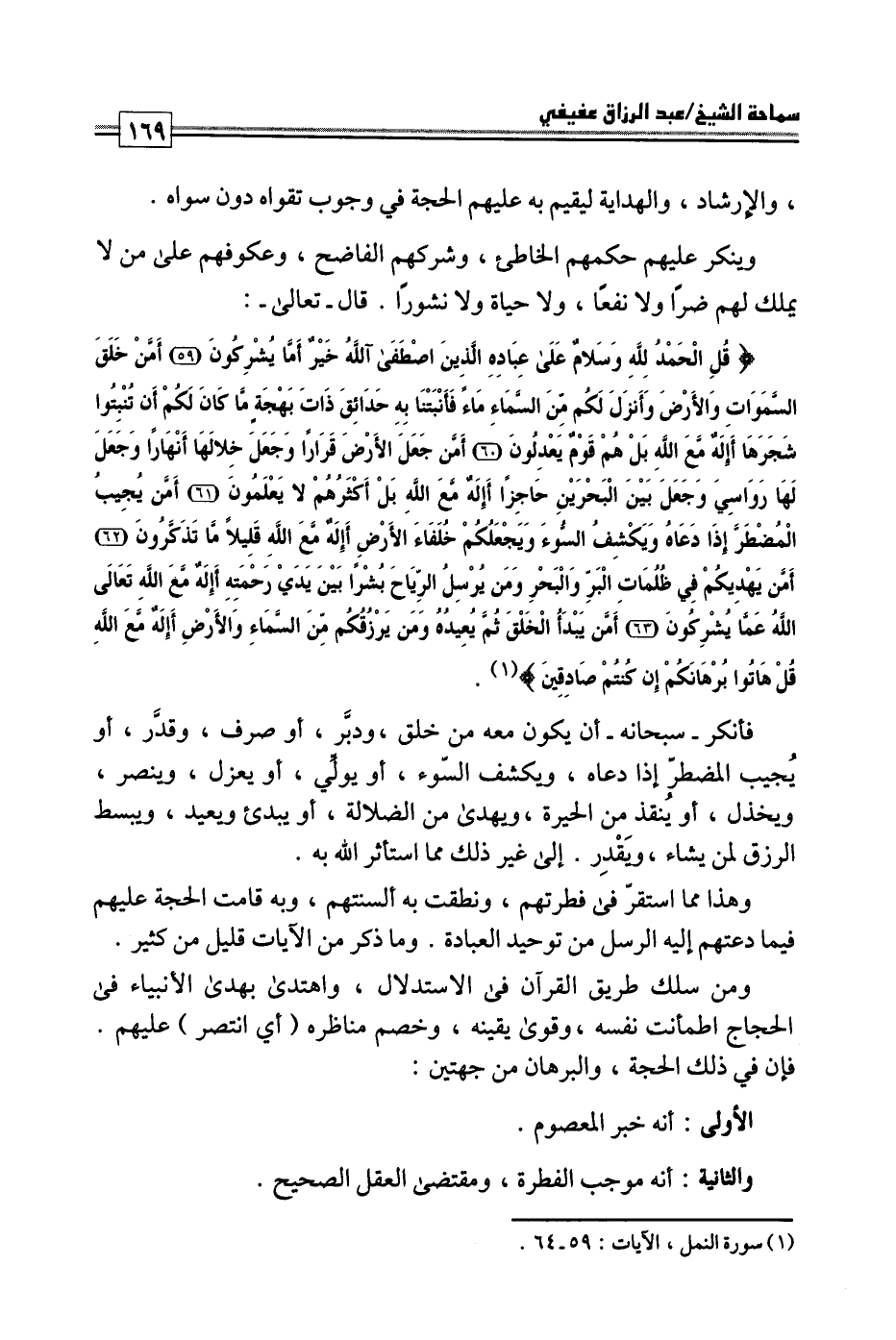كتاب فتاوى ورسائل سماحة الشيخ عبد الرزاق عفيفي - قسم العقيدة