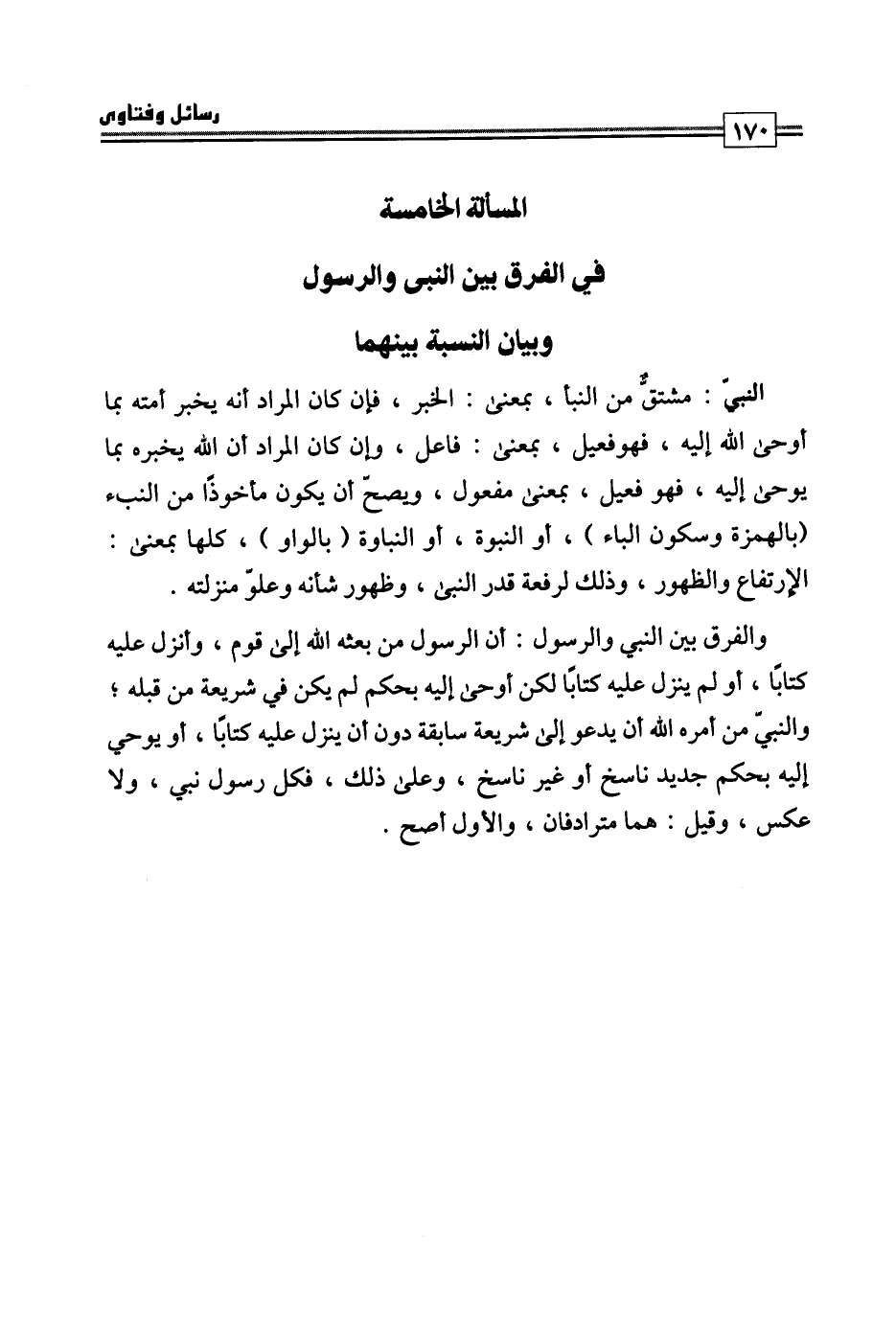 كتاب فتاوى ورسائل سماحة الشيخ عبد الرزاق عفيفي - قسم العقيدة