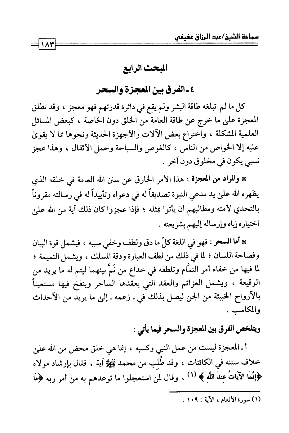 كتاب فتاوى ورسائل سماحة الشيخ عبد الرزاق عفيفي - قسم العقيدة
