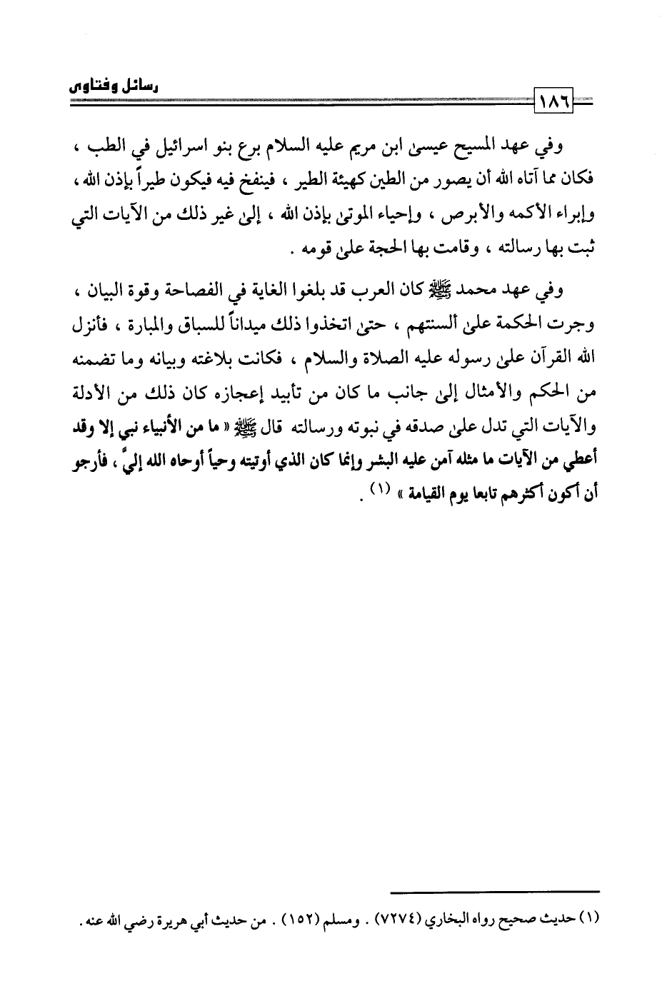 كتاب فتاوى ورسائل سماحة الشيخ عبد الرزاق عفيفي - قسم العقيدة
