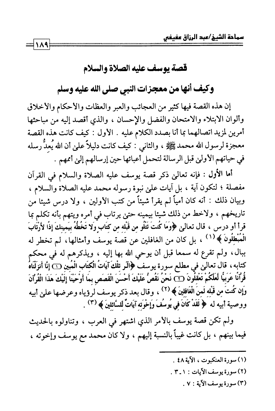 كتاب فتاوى ورسائل سماحة الشيخ عبد الرزاق عفيفي - قسم العقيدة