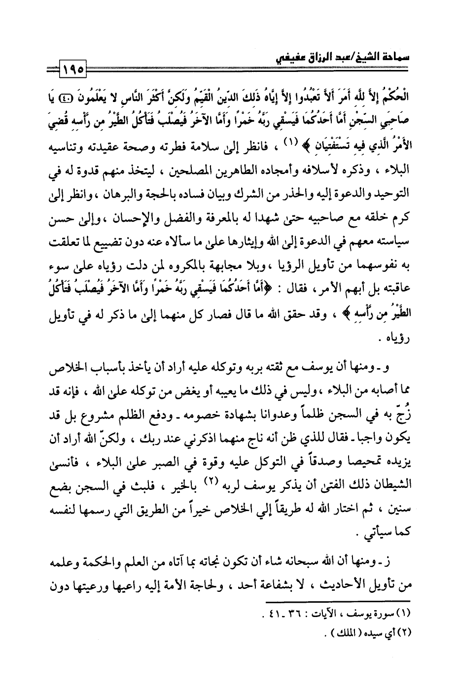 كتاب فتاوى ورسائل سماحة الشيخ عبد الرزاق عفيفي - قسم العقيدة