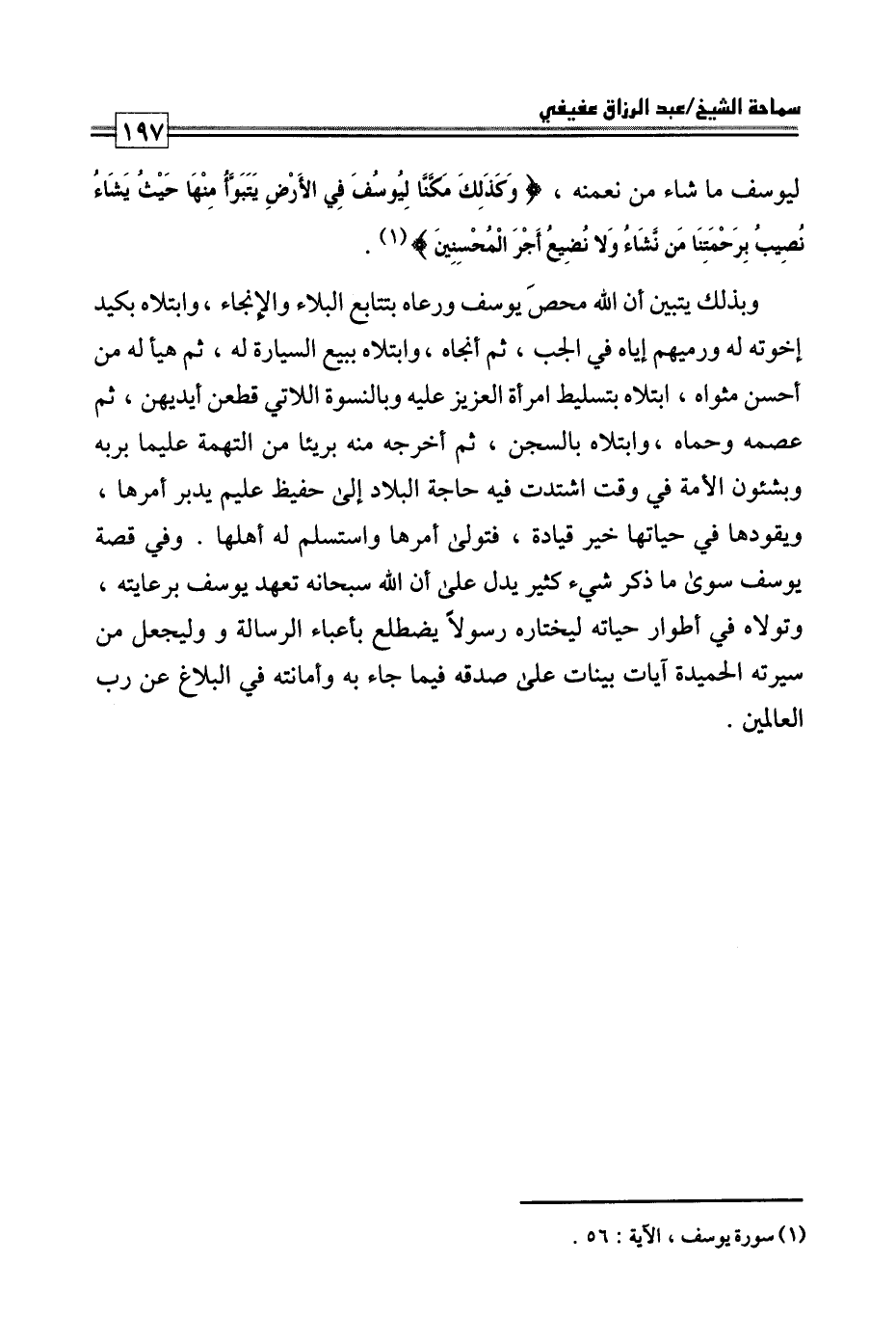 كتاب فتاوى ورسائل سماحة الشيخ عبد الرزاق عفيفي - قسم العقيدة