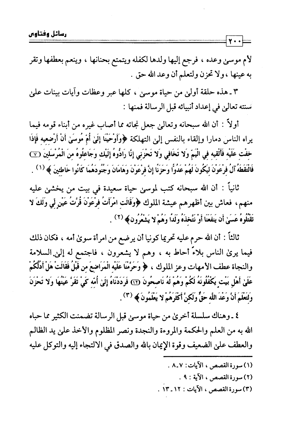 3 - هذه حلقة أولى من حياة موسى، كلها عبر وعظات وآيات بينات على سنته تعالى في إعداد أنبيائه قبل الرسالة فمنها: