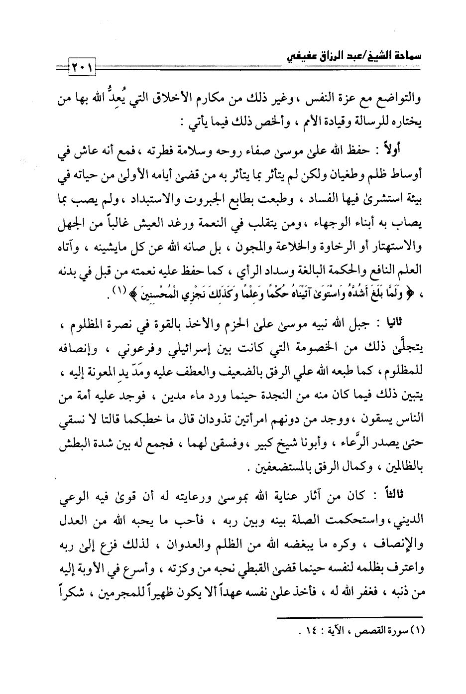 والتواضع مع عزة النفس، وغير ذلك من مكارم الأخلاق التي يعد الله بها من يختاره للرسالة وقيادة الأمم، وألخص ذلك فيما يأتي: