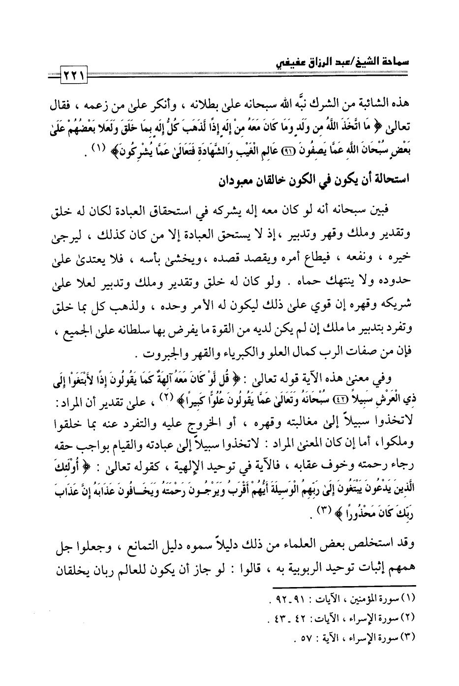 كتاب فتاوى ورسائل سماحة الشيخ عبد الرزاق عفيفي - قسم العقيدة