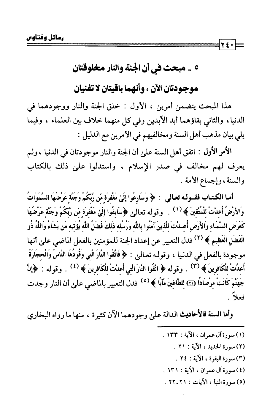 5 - مبحث في أن الجنة والنار مخلوقتان