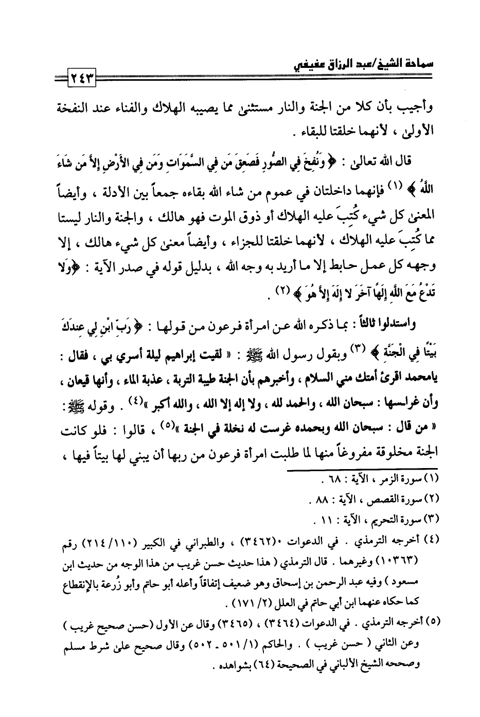 كتاب فتاوى ورسائل سماحة الشيخ عبد الرزاق عفيفي - قسم العقيدة