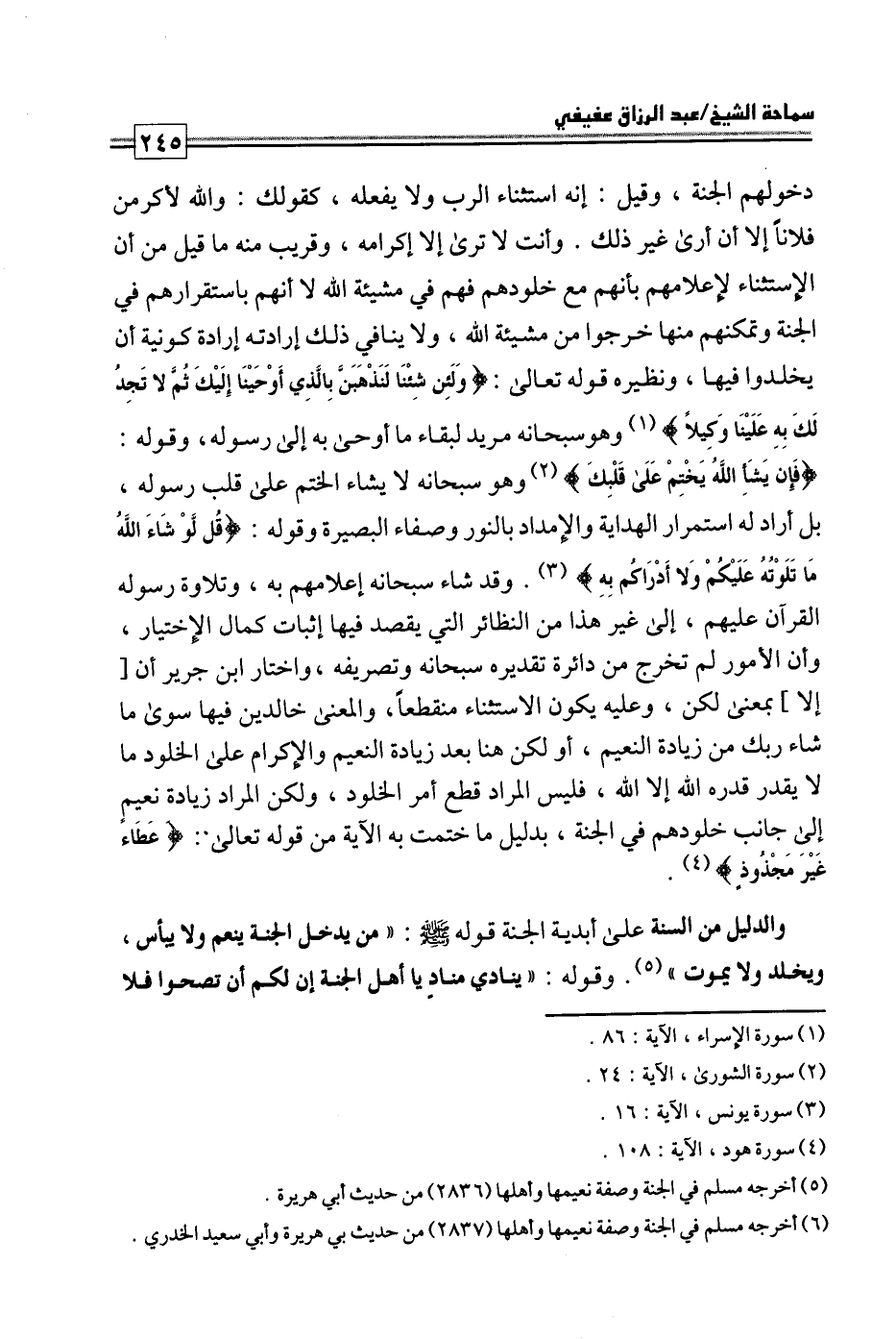 كتاب فتاوى ورسائل سماحة الشيخ عبد الرزاق عفيفي - قسم العقيدة
