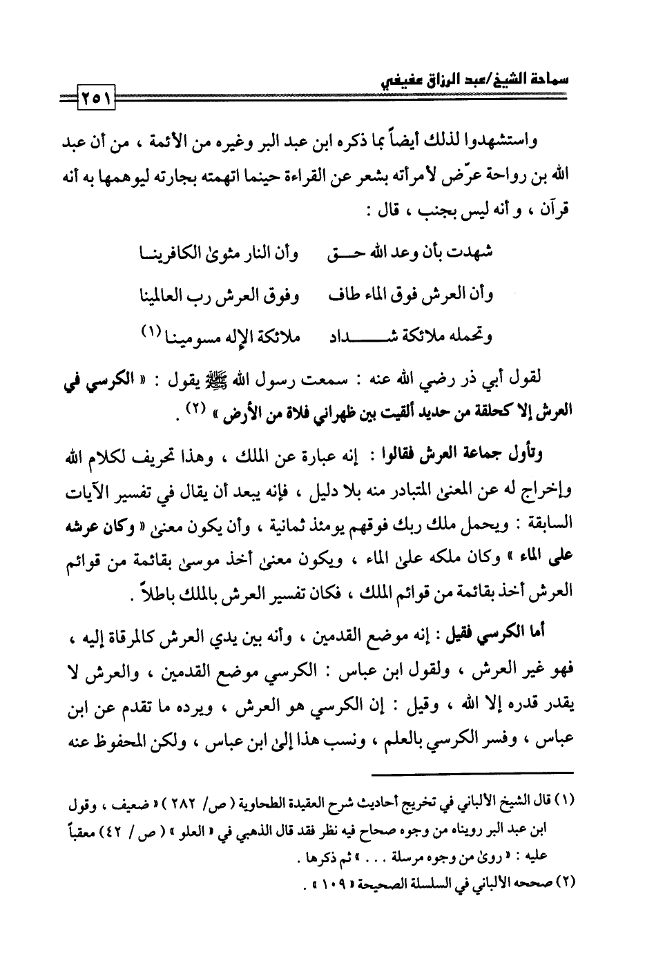 كتاب فتاوى ورسائل سماحة الشيخ عبد الرزاق عفيفي - قسم العقيدة
