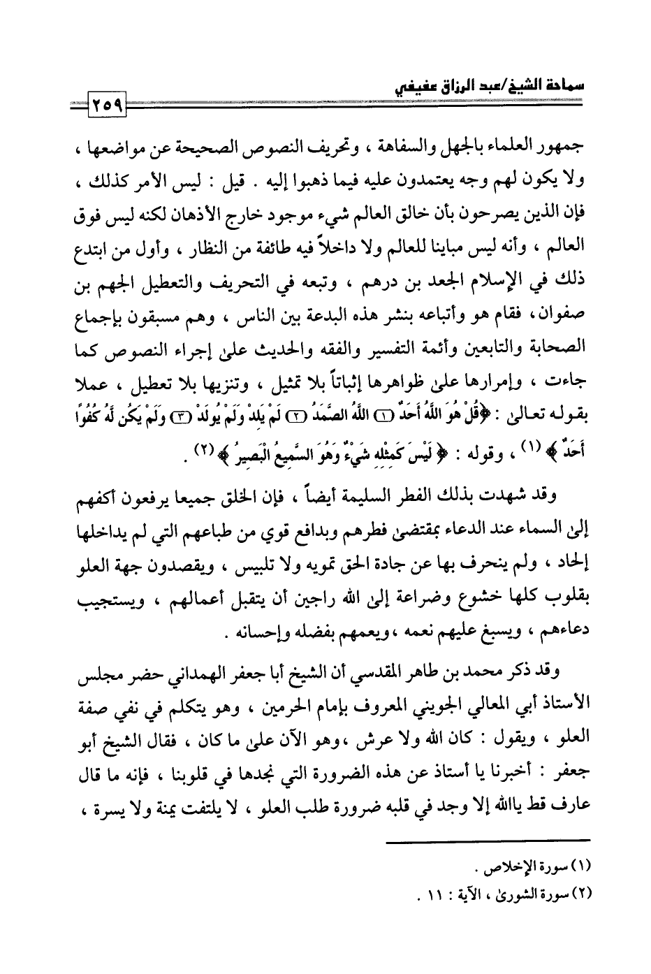 كتاب فتاوى ورسائل سماحة الشيخ عبد الرزاق عفيفي - قسم العقيدة