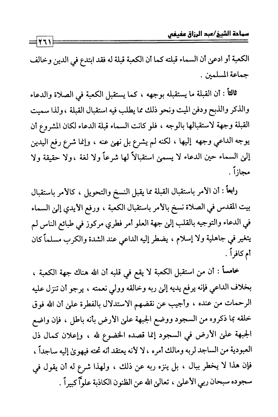 كتاب فتاوى ورسائل سماحة الشيخ عبد الرزاق عفيفي - قسم العقيدة