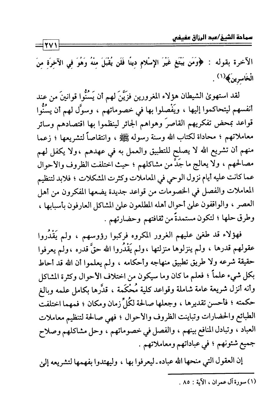كتاب فتاوى ورسائل سماحة الشيخ عبد الرزاق عفيفي - قسم العقيدة