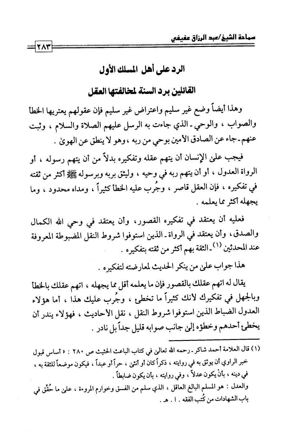 كتاب فتاوى ورسائل سماحة الشيخ عبد الرزاق عفيفي - قسم العقيدة
