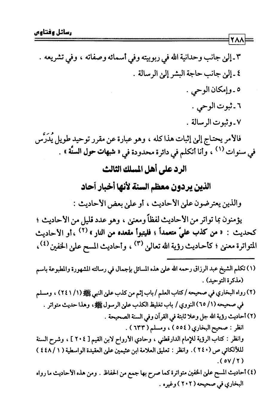 كتاب فتاوى ورسائل سماحة الشيخ عبد الرزاق عفيفي - قسم العقيدة