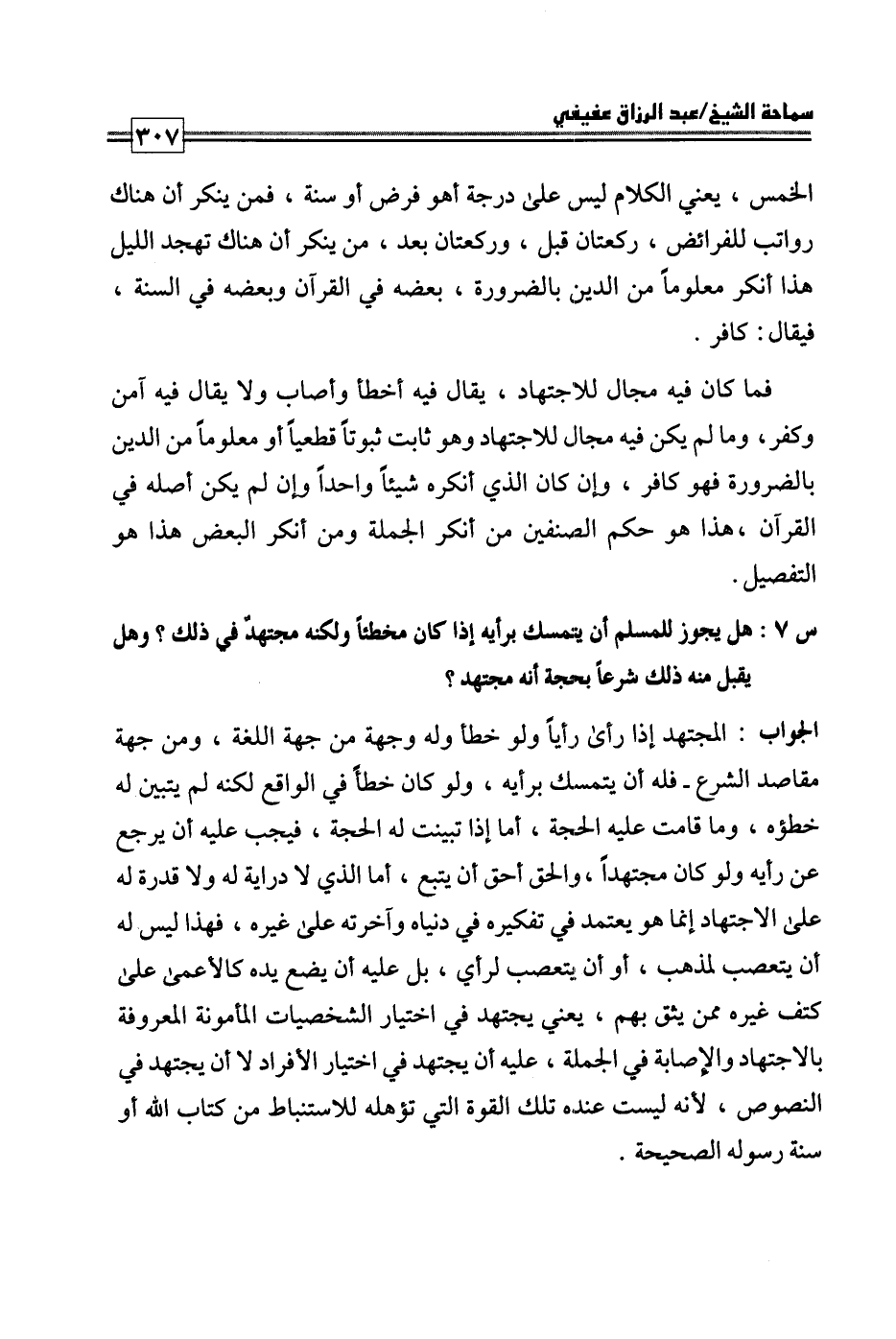 كتاب فتاوى ورسائل سماحة الشيخ عبد الرزاق عفيفي - قسم العقيدة