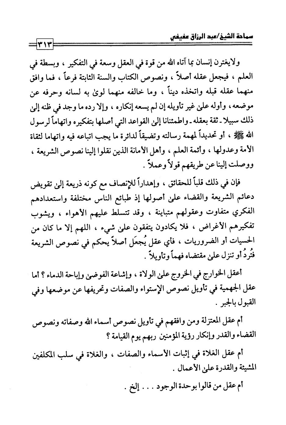 كتاب فتاوى ورسائل سماحة الشيخ عبد الرزاق عفيفي - قسم العقيدة