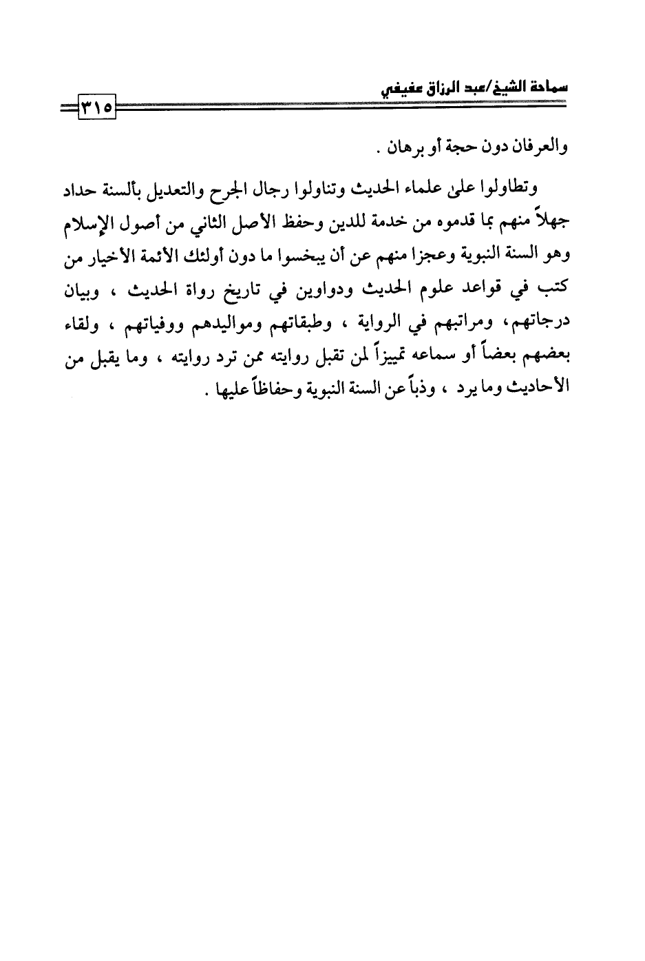 وتطاولوا على علماء الحديث وتناولوا رجال الجرح والتعديل بألسنة حداد جهلا منهم بما قدموه من خدمة للدين وحفظ الأصل الثاني من أصول الإسلام وهو السنة النبوية وعجزا منهم عن أن يبخسوا ما دون أولئك الأئمة الأخيار من كتب في قواعد علوم الحديث ودواوين في تاريخ رواة الحديث، وبيان درجاتهم، ومراتبهم في الرواية، وطبقاتهم ومواليدهم ووفياتهم، ولقاء بعضهم بعضا أو سماعه تمييزا لمن تقبل روايته ممن ترد روايته، وما يقبل من الأحاديث وما يرد، وذبا عن السنة النبوية وحفاظا عليها.