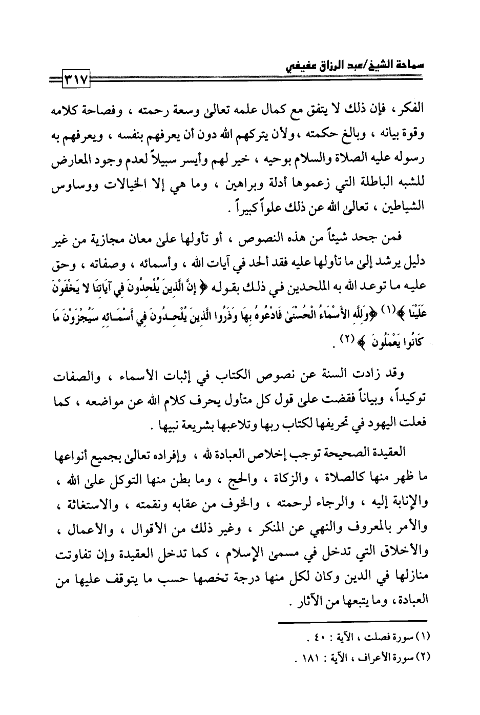 كتاب فتاوى ورسائل سماحة الشيخ عبد الرزاق عفيفي - قسم العقيدة