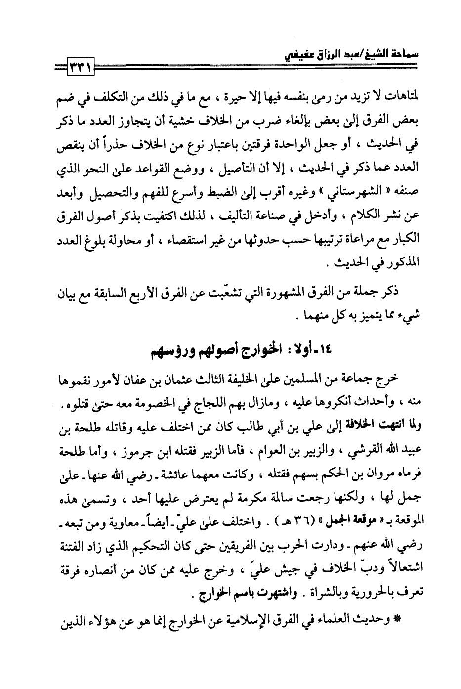 كتاب فتاوى ورسائل سماحة الشيخ عبد الرزاق عفيفي - قسم العقيدة