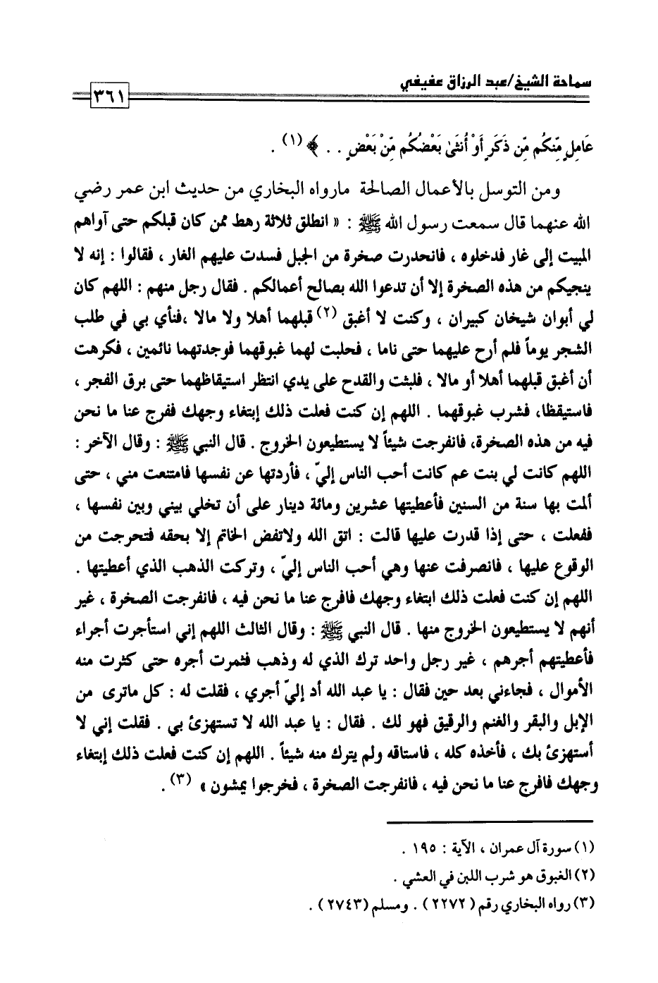 كتاب فتاوى ورسائل سماحة الشيخ عبد الرزاق عفيفي - قسم العقيدة