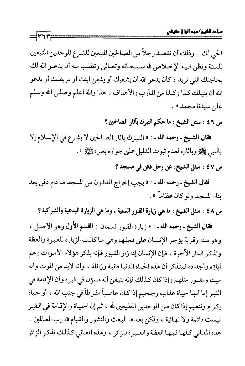كتاب فتاوى ورسائل سماحة الشيخ عبد الرزاق عفيفي - قسم العقيدة