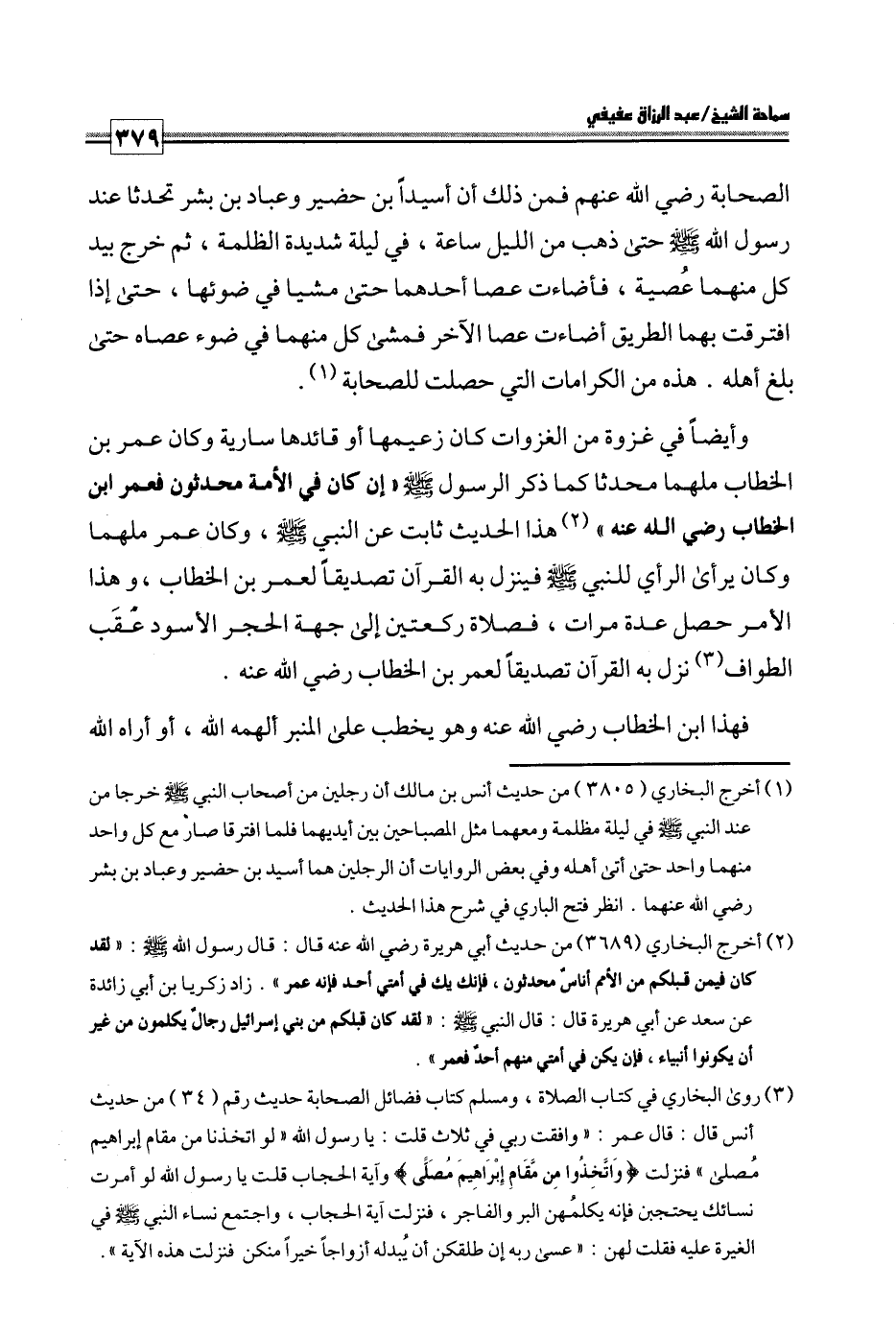 كتاب فتاوى ورسائل سماحة الشيخ عبد الرزاق عفيفي - قسم العقيدة