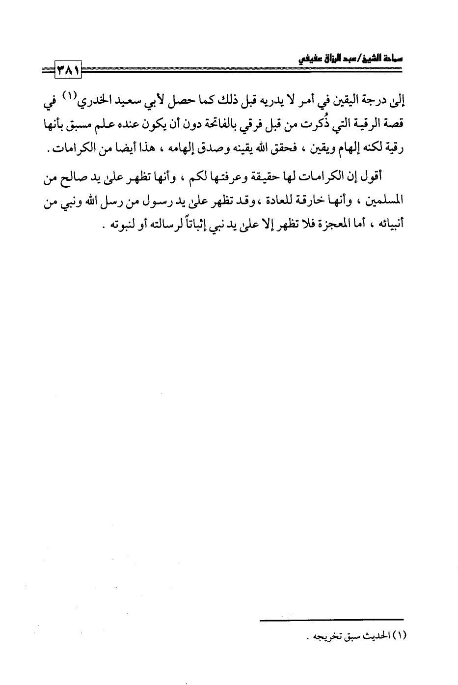 كتاب فتاوى ورسائل سماحة الشيخ عبد الرزاق عفيفي - قسم العقيدة