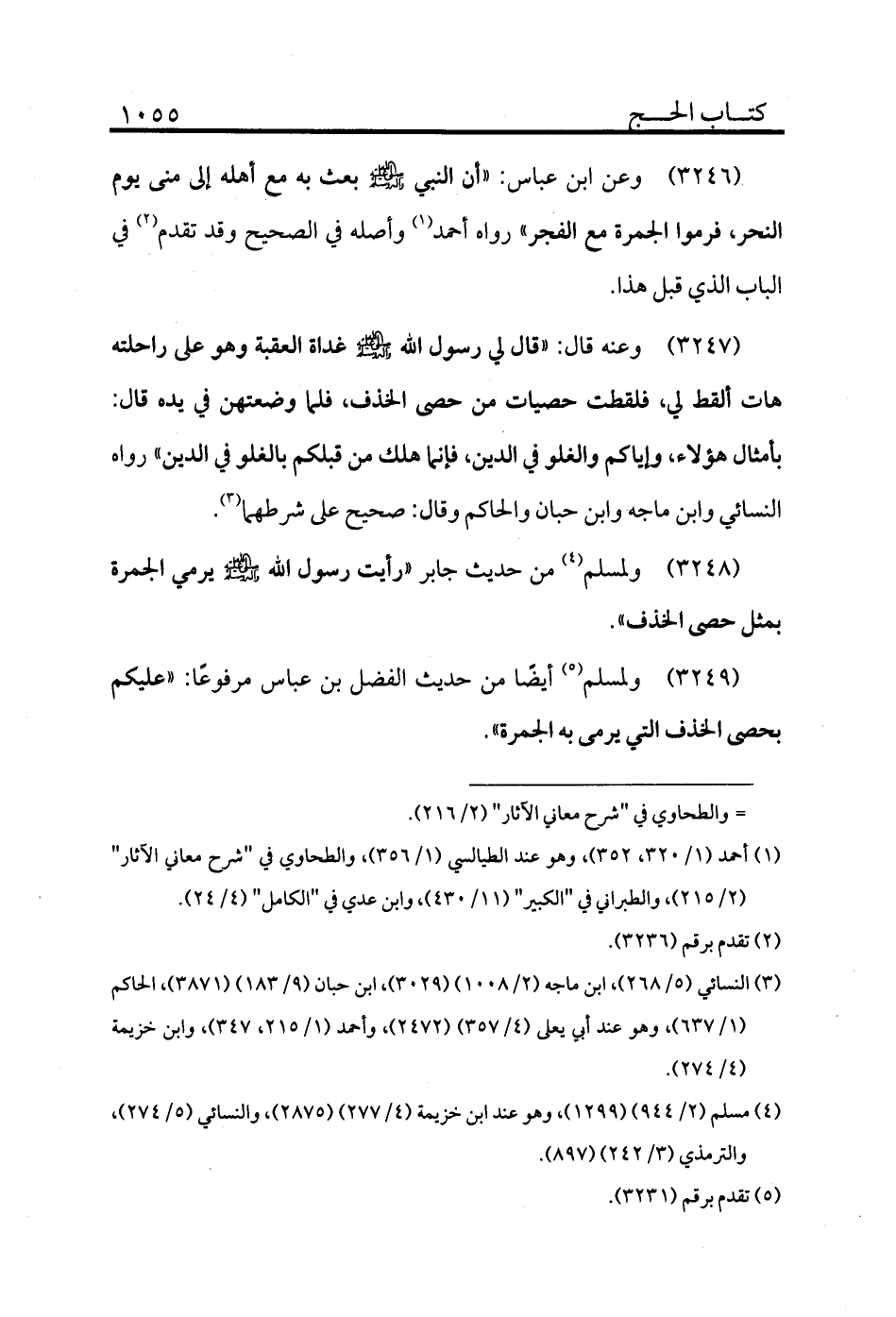 3249 - ولمسلم (¬5) أيضًا من حديث الفضل بن عباس مرفوعًا: «عليكم بحصى الخذف التي يرمى به الجمرة» .