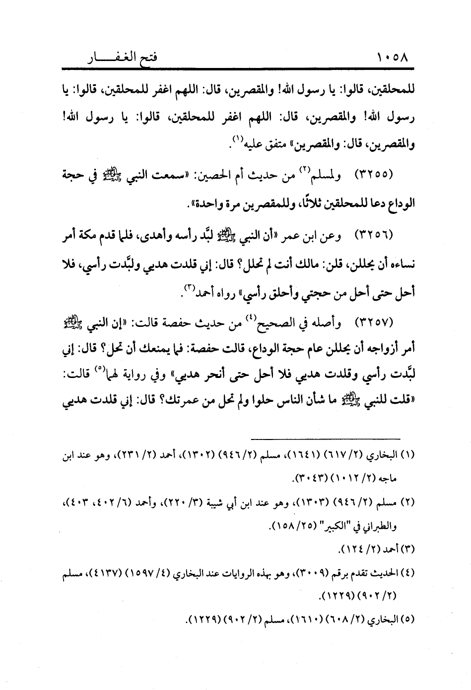 (¬1) البخاري (2/617) (1641) ، مسلم (2/946) (1302) ، أحمد (2/231) ، وهو عند ابن ماجه (2/1012) (3043) .