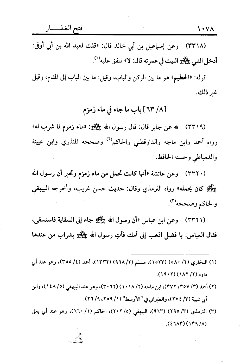 3319 - عن جابر قال: قال رسول الله - صلى الله عليه وسلم -: «ماء زمزم لما شرب له» رواه أحمد وابن ماجه والدارقطني والحاكم (*) (¬2) وصححه المنذري وابن عيينة والدمياطي وحسنه الحافظ.