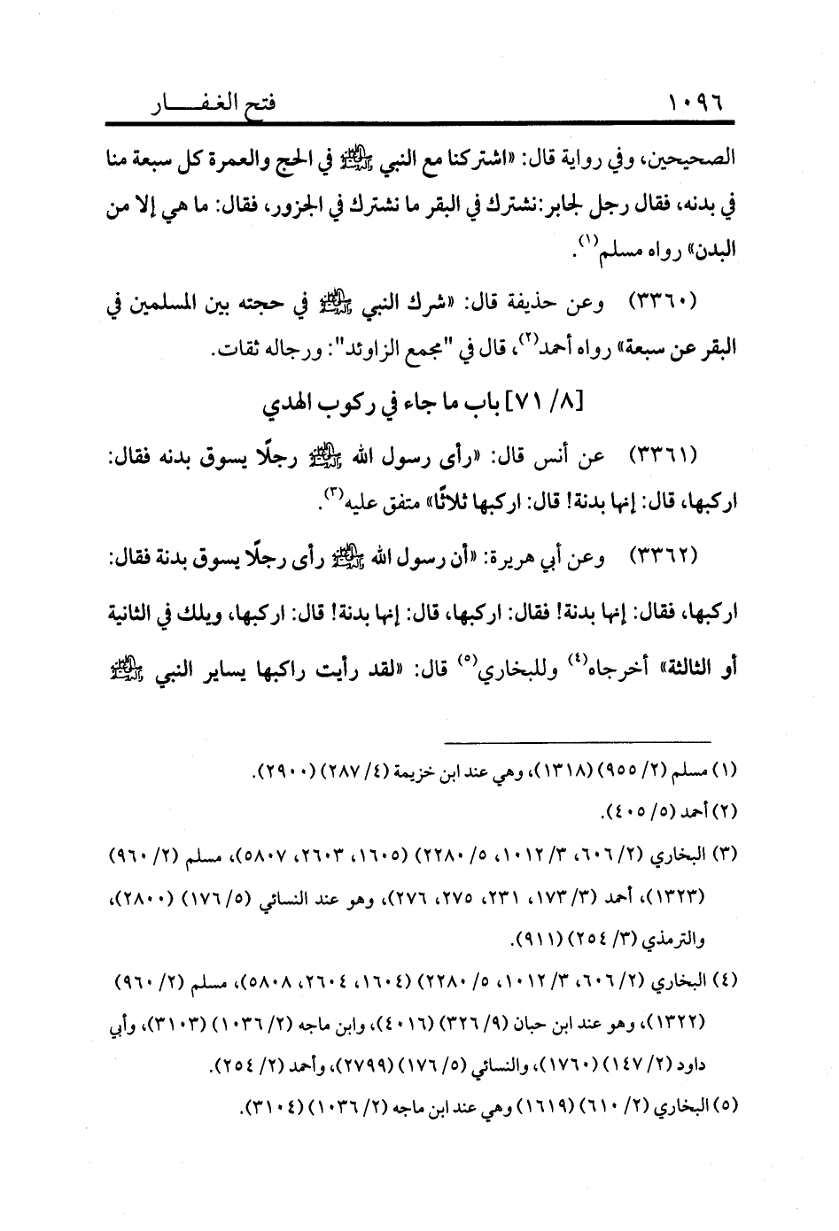 3360 - وعن حذيفة قال: «شرك النبي - صلى الله عليه وسلم - في حجته بين المسلمين في البقر عن سبعة» رواه أحمد (¬2) ، قال في "مجمع الزاوئد": ورجاله ثقات.