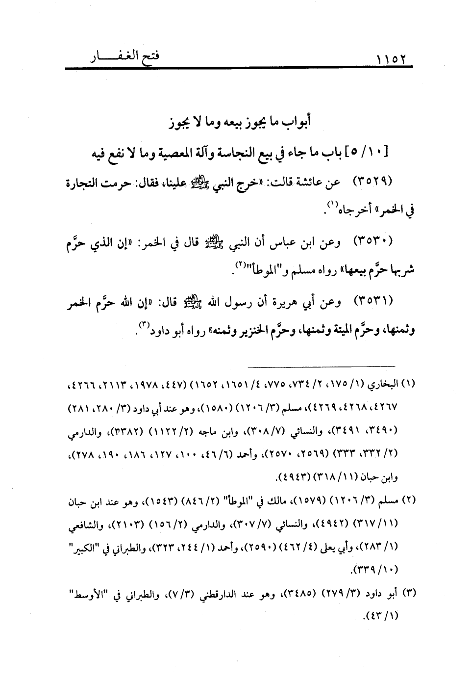 3530 - وعن ابن عباس أن النبي - صلى الله عليه وسلم - قال في الخمر: «إن الذي حرم شربها حرم بيعها» رواه مسلم و"الموطأ" (¬2) .