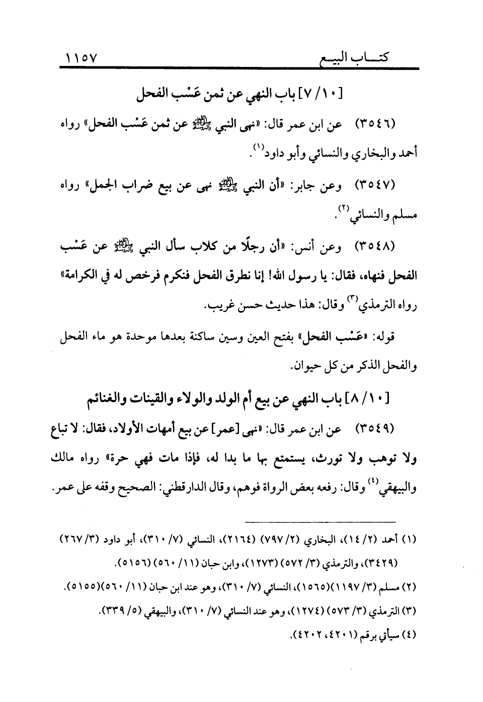 3546 - عن ابن عمر قال: «نهى النبي - صلى الله عليه وسلم - عن ثمن عسب الفحل» رواه أحمد والبخاري والنسائي وأبو داود (¬1) .
