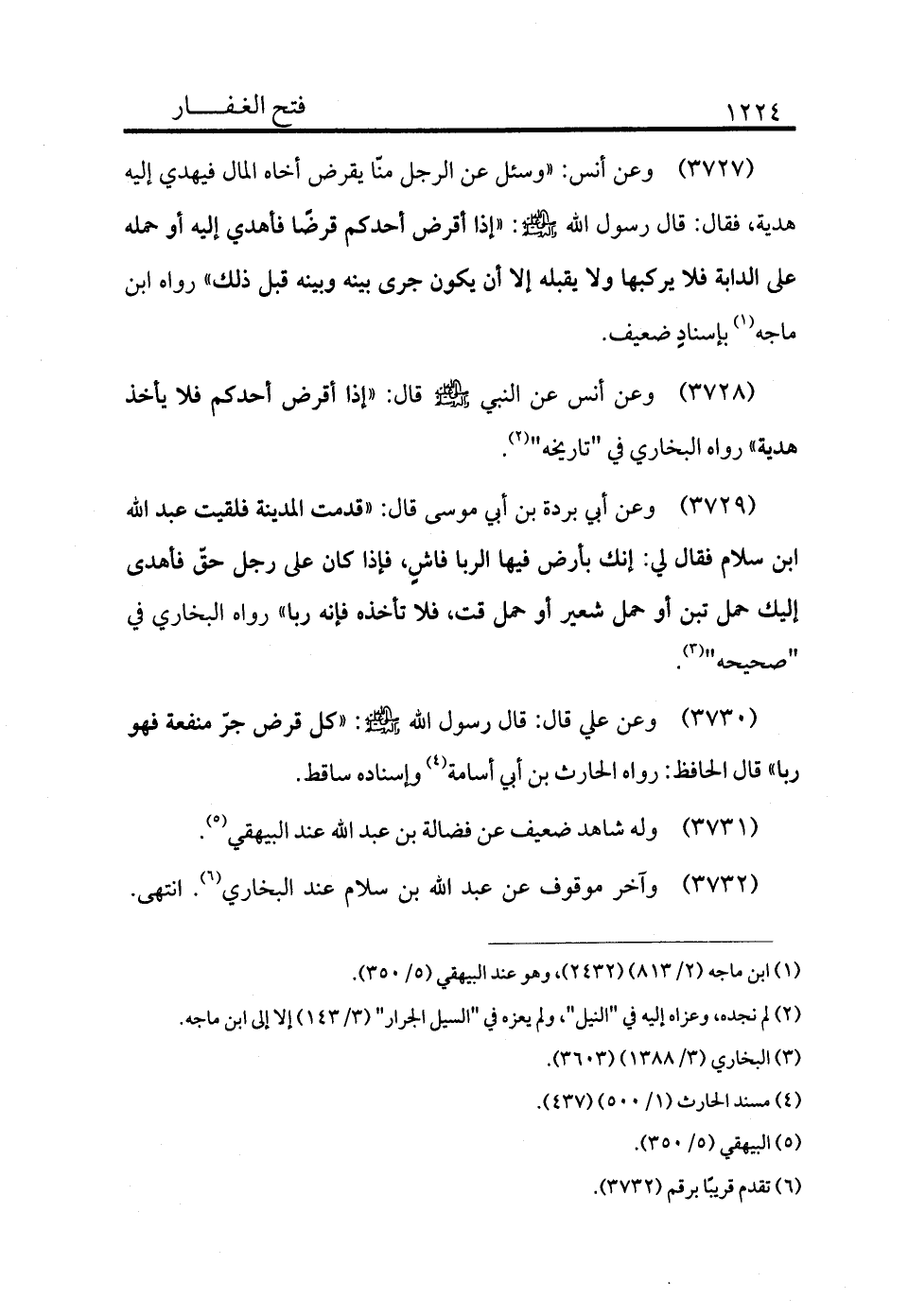 3728 - وعن أنس عن النبي - صلى الله عليه وسلم - قال: «إذا أقرض أحدكم فلا يأخذ هدية» رواه البخاري في "تاريخه" (¬2) .