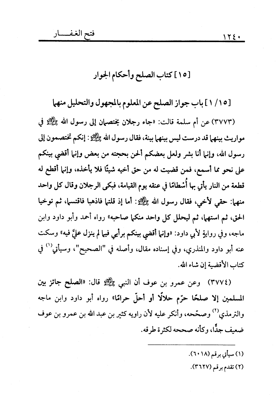 [15/1] باب جواز الصلح عن المعلوم بالمجهول والتحليل منهما