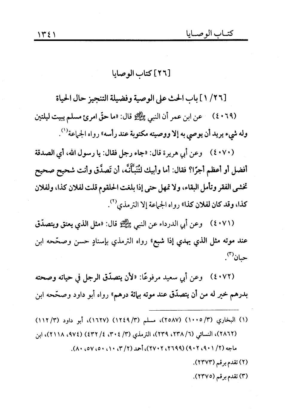 [26/1] باب الحث على الوصية وفضيلة التنجيز حال الحياة
